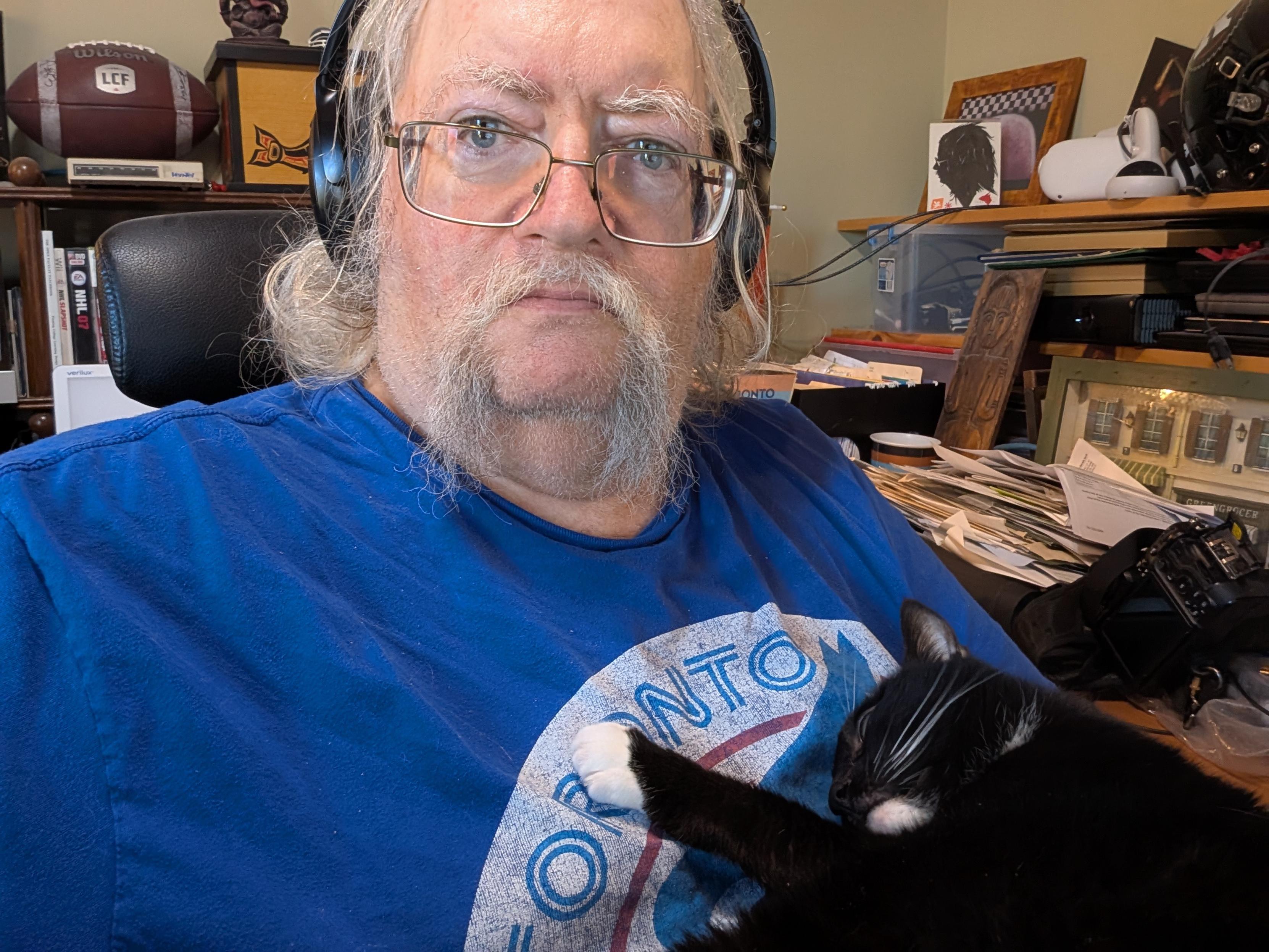 October 27, 2025. Cat. Working in my home office today. Mostly reading because of the cat between me and the keyboard. For those who wonder, her name is Emma. #SDDaily. URL: https://ift.tt/pRVqhHO