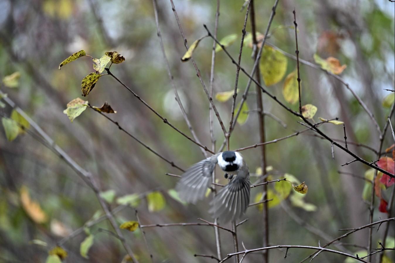 November 2, 2025. Chickadee flying right toward me. Andrea and I went for a 7km walk in Mer Bleue forest today and the chickadees were active. #SDDaily One actually landed on Andrea's phone as she was taking a shot but I was a second too late to capture the image. Now that I'm getting more familiar with my Z8 (it takes quite a while!) I might begin to be able to hone in on some really great shots.. URL: https://ift.tt/T8m7qlp